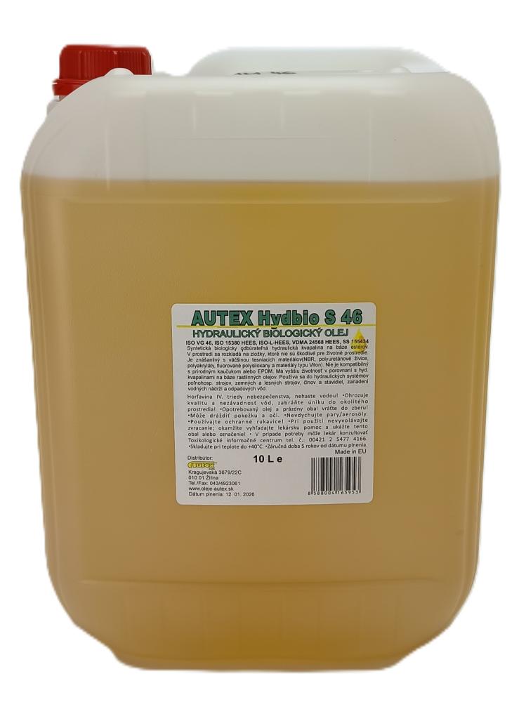 AUTEX Hydbio 46 S je syntetický bioodbúrateľný hydraulický olej - syntetická biologicky odbúrateľná hydraulická kvapalina na báze esterov. V okolitom prostredí sa rozkladá v danom čase na zložky, ktoré nie sú škodlivé pre životné prostredie. Je znášanlivý s väčšinou tesniacich materiálov (NBR, polyuretánové živice, polyakryláty, fluorovanépolysiloxany a materiály typu Viton). Nie je kompatibilný s prírodným kaučukom alebo EPDM. Má vyššiu životnosť v porovnaní s hydraulickými kvapalinami na báze rastlinných olejov. Jeho schopnosť biologickej odbúrateľnosti by sa mohla znížiť alebo by úplne zanikla, aksa zmieša s olejom, ktorý nie je biodbúrateľný.Špecifikácie a súhlasy:Viskozitná trieda:ISO VG 46 ISO 15380 HEESISO-L-HEES