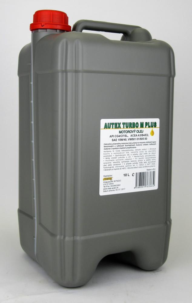 AUTEX TURBO M PLUS 15W-40 je univerzálny motorový olej zložený z minerálnych olejov vyrobených s použitím najmodernejších procesov rafinácie ropy, s použitím vyváženého systému prísad, ktorý zaisťuje vysokú výkonnosť motorového olejav automobiloch a úžitkových vozidlách spolu s prísadami pre modifikáciu viskozitných charakteristík.Špecifikácie a súhlasy:Viskozitná trieda SAE 15W-40 ACEA E2-96 Issue 5ACEA A3/B4
